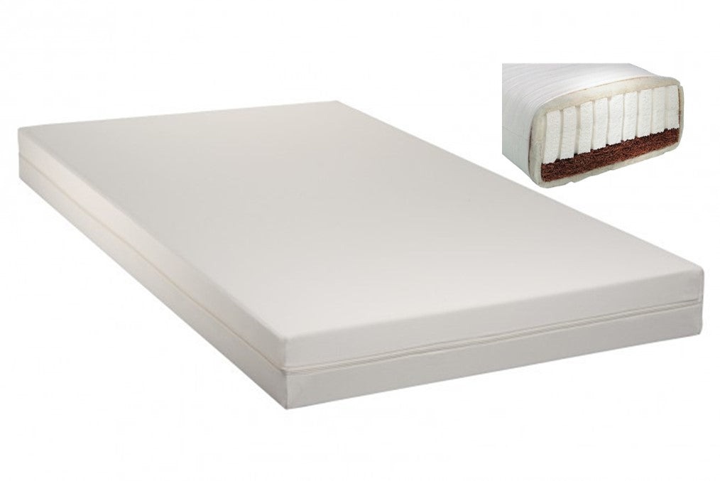 Wir bieten Baby- und Kindermatratze mit einem zweilagigen Aufbau. Auf der einen Seite gibt die gummierte Kokosfaser eine sehr feste, aber elastische Oberfläche. Insbesondere erfüllt dies die Vorschriften zur Verhinderung des plötzlichen Kindstods. Um diese Kriterien zu erfüllen, darf das Köpfchen des Babys nicht in die Matratzenoberfläche einsinken – immer unter Berücksichtigung eines ungehinderten Atemflusses.