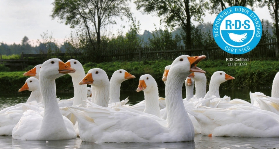 Die Daunen tragen das RDS-Zertifikat, welches eine nachhaltige Tierhaltung, keinen Lebendrupf und eine lückenlose Rückverfolgbarkeit garantiert.