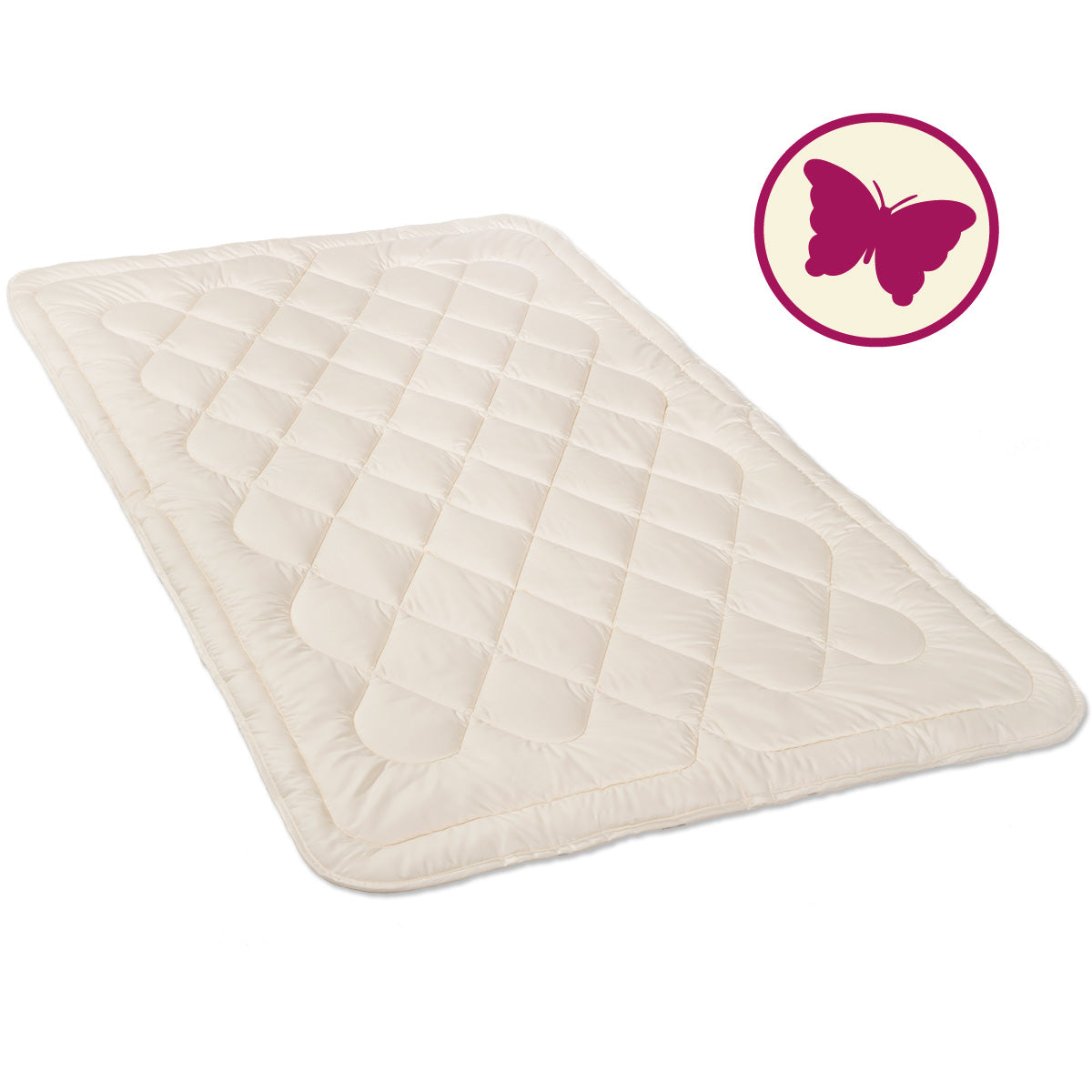 Kuscheln Sie sich ganzjährig in hochwertige Seide! Alle, die es nicht so warm, aber richtig edel bevorzugen, sind in der Ganzjahresdecke Seide wohlig gehüllt. Seide ist sehr leicht und geschmeidig, fühlt sich kühl an, nimmt Feuchtigkeit auf, die der Körper nachts abgibt und fühlt sich dennoch trocken an. Der glatte Satinbezug aus Bio-Baumwolle komplettiert das Luxusbett.