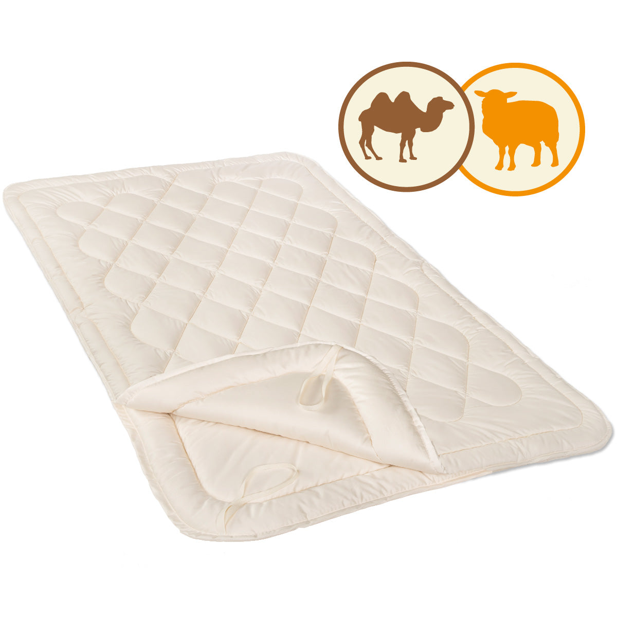 135 x 200 cm: 500 g + 1000 g Kamelflaumhaar/ Schafschurwolle - Bezug: Satin (Baumwolle, kbA)