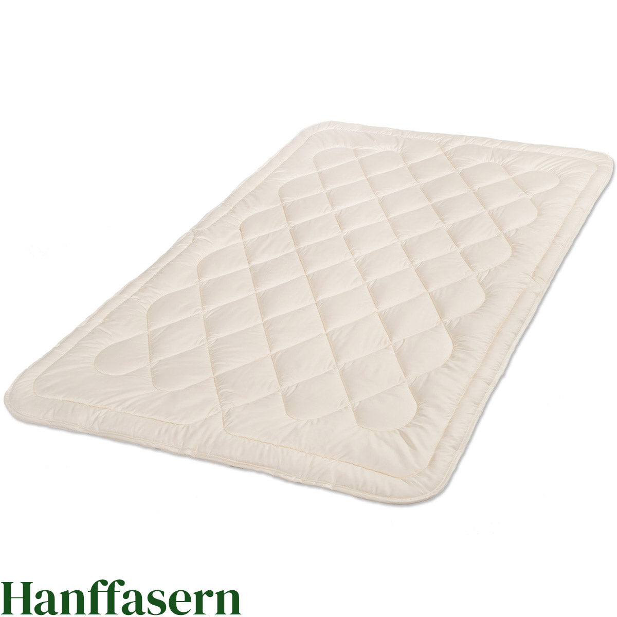 Hanffasern schaffen ein sehr behagliches Schlafgefühl: Ideal im Sommer, da sie kühl und erfrischend wirken. Wärmend im Winter, da die Faser innen hohl ist und ein dämmendes Wärmepolster bildet. Die besonders hohe Feuchtigkeitsaufnahme, das geringe Gewicht und Elastizität sind weitere Pluspunkte. Hanf hat eine besonders gute Öko-Bilanz, da es „natürlich bio“, also ohne besondere Maßnahmen wie düngen oder Schädlingsbehandlung, bestens gedeiht. Als rein pflanzliches Material auch für alle bestens geeignet, die auf tierische Fasern verzichten wollen oder müssen.